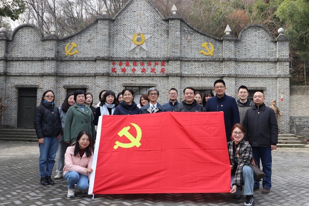 为了弘扬以伟大建党精神为源头的中国共产党人精神谱系,用好红色资源,激励支部党员干部职工鼓足干劲,砥砺韧劲,以更加饱满的状态投身到学校事业发展中来,2月28日上午,机关第一、第二党支部联合开展以“赓续红色血脉 激发改革创新内生动力”为主题的党日活动。校党委副书记谭忠,党委常委、党委组织部部长李丽,机关党委和两个支部的党员同志共同参加本次活动。