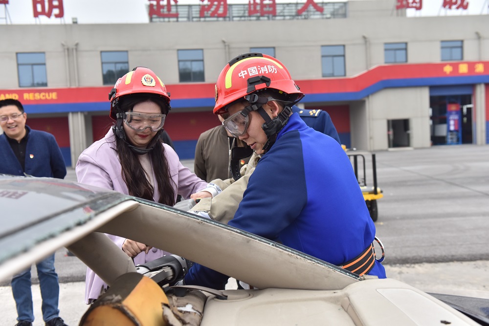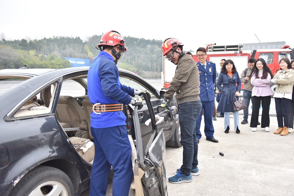 如何在发生紧急事故时正确操作?如何在遇到危险时正确处置?伴随着消防救援局训练总队队员的精彩讲解和演示,机关党委第一、二党支部的党员教师们屏住呼吸、专注认真地观看了一场又一场扣人心弦的消防救援表演。支部几位老师在指导下尝试使用专业器具剪断了车门,切身体验了交通事故中救援器具的实际使用... ...
