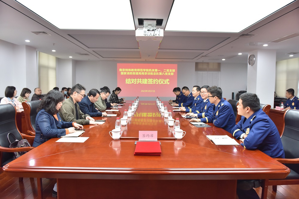 校党委常委、副校长吴彬江表示,南京特师是全国唯一一所独立设置的特殊教育本科院校,为中国特殊教育与残疾人服务事业的发展,培养输送了大批专业人才,被誉为“中国特殊教育的摇篮”。而国家消防救援局南京训练总队同样为全国消防骨干力量的培养、特种灾害专业技能训练、跨区域应急救援增援等方面贡献了自己不可或缺的力量。双方在特殊的专业行业,都肩负着“立德树人”的使命担当,双方依托校地共建,努力将党建与事业发展深度融合,进一步增强基层党组织的创造力、凝聚力,实现互带互助、优势互补、资源共享、共同发展的基层党建新格局。